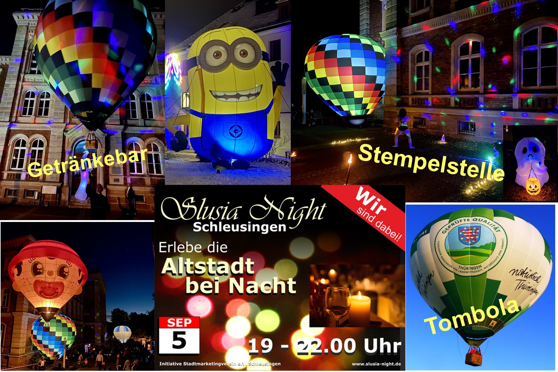 Ihr findet ihn bei unserem Stand am Gymnasium Schleusingen, wo er auf Fotos mit Euch wartet. Natürlich gibt es wieder unsere Tombola mit dem Hauptpreis einer Ballonfahrt für eine Person. Und unsere Ballone werden wir auf dem Schleusinger Marktplatz wieder zum Glühen bringen. Es wird toll!!!